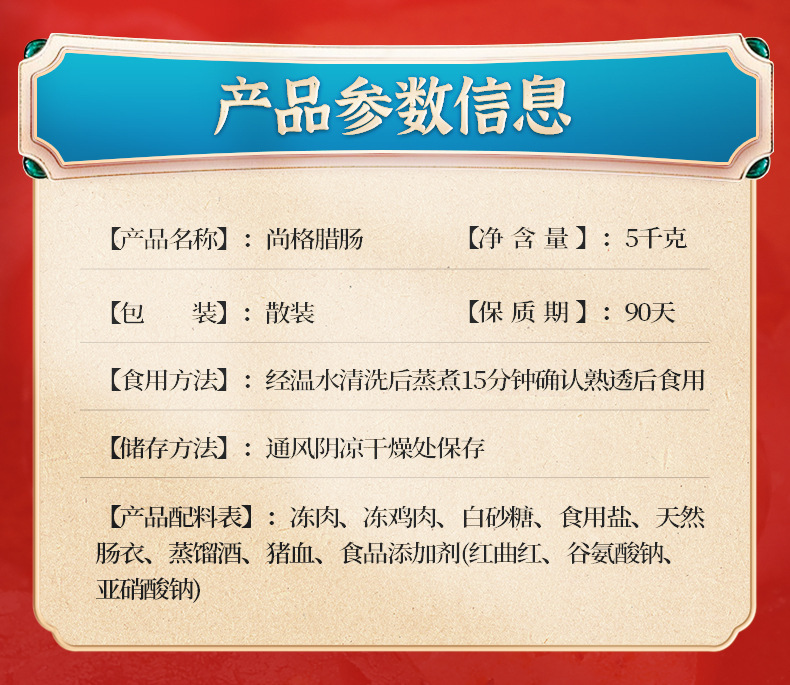 廣東臘腸廣式香腸廣味切肉臘腸老廣臘味酒店餐廳10斤一箱尚格臘腸