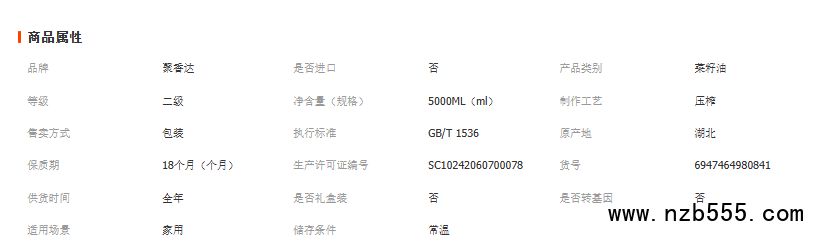 聚香達純正菜籽油5L香